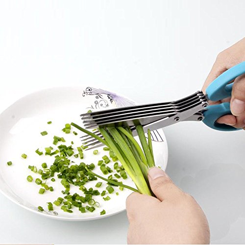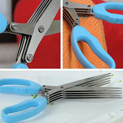 5 Layer Multi-Functional Stainless Steel Kitchen Scissors Cooking Tool [Blue]
