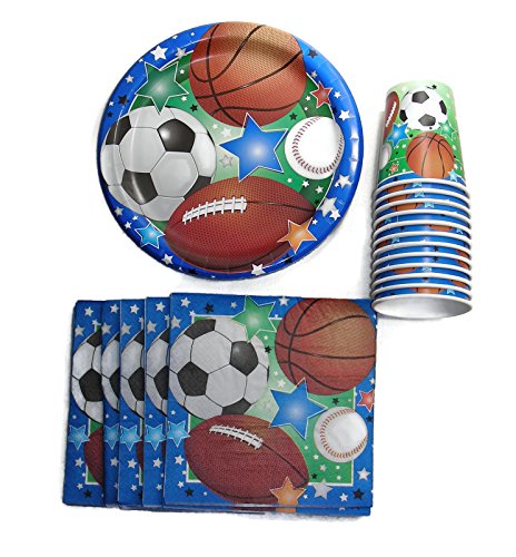 Party Supplies for Girls or Boys, Sports Themed (Includes Plates, Cups and Napkins for 36 kids)