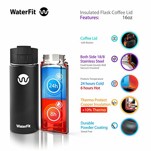 18/8 FOOD-GRADE STAINLESS STEEL: Unlike other cheaply made bottles, our modern water / coffee travel bottle is made of healthy, durable, rust-resistant pure steel. Sealed sports bottle with button coffee lid. It doesn't transfer coffee, beer, wine or juice flavors.