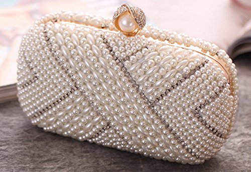 (bettyhome)/Accessories/Handbags/DIRECT FROM USA/Bettyhome Women Lady Elegant White Crystal Rhinestone Pearl Bead Evening Bag Party Handbags Wed...