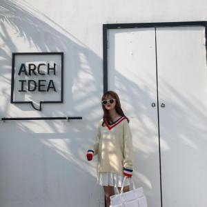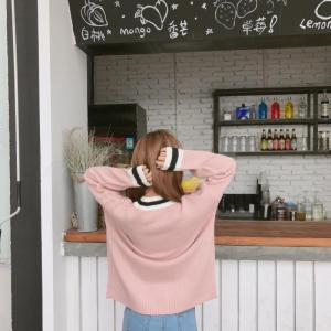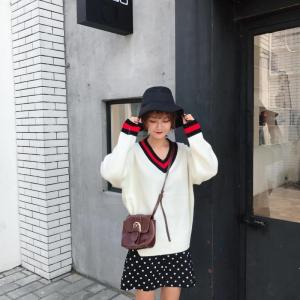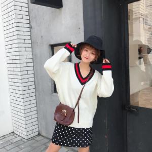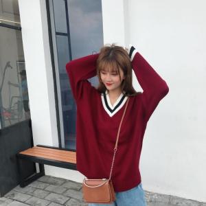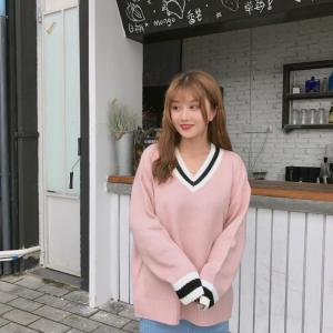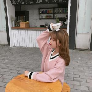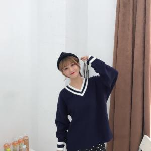 Vネックラインと袖口のカラーが可愛いニットセーター☆