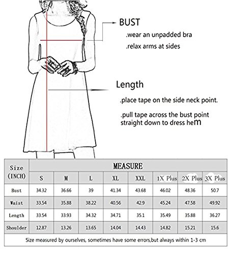 There is 2-3% difference according to manual measurement. Please check the measurement chart carefully before you buy the it. Size S, M ,L ,XL ,XXL ,Plus size 1X ,Plus size 2X,Plus size 3X