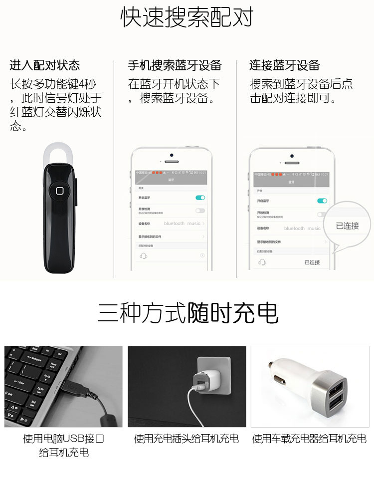 Use the computer USB interface to charge the headset