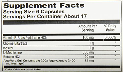 Lipotropic 1000 plus by Solaray is high potency choline and inositol with L-Methionine, HCl and vitamin B6.