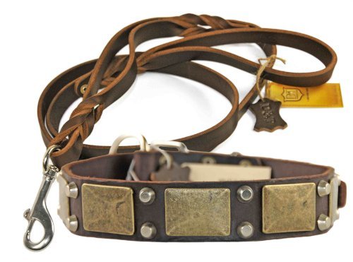 (Dean Tyler)/Pet Supplies/Flea Tick Control/DIRECT FROM USA/Dean Tyler The Antique Leather Collar with Matching Braidy Bunch leash for Pets, 34 to 38-Inc...