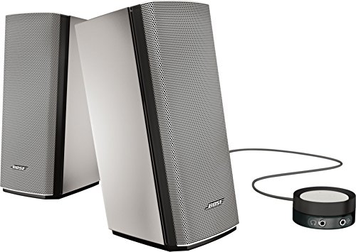 Presenting the highest-performing two-speaker computer system from Bose, the Companion® 20 multimedia speaker system. It lets you enjoy full, natural sound, whether you are sitting in front of your computer or listening from across the room. Easy to connect to your desktop, laptop or tablet, its room-filling performance will bring more life to your music, games and videos. The wide, natural sound is reproduced by exclusive TrueSpace® stereo digital signal processing. And you'll feel the powerful low notes, no matter the listening level. Features a sleek, space-saving design and unique control pod to adjust or mute volume and connect headphones or other audio devices.Feature