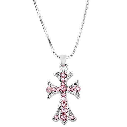 -. Title : West Syrian Cross Pendant Necklace Rhinestone Crystal Rhodium High Polished J0213-PK