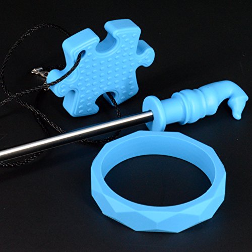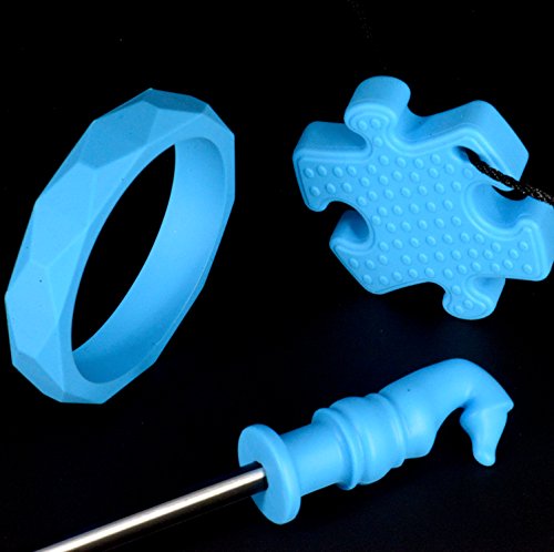 Teething & Chew Toys for Babies or Kids [ADHD / Autism / High-Activity who need Fidget Toys] - Silicone Bracelet (1) Puzzle Piece Necklace (1) Chess Piece Pencil Topper (1)