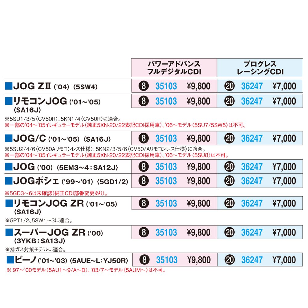 ○ JOG POCHE ('99 - '01 5 GD 1/2) * 5 GD 3 ~ 6 not confirmed (genuine CDI part number changed).