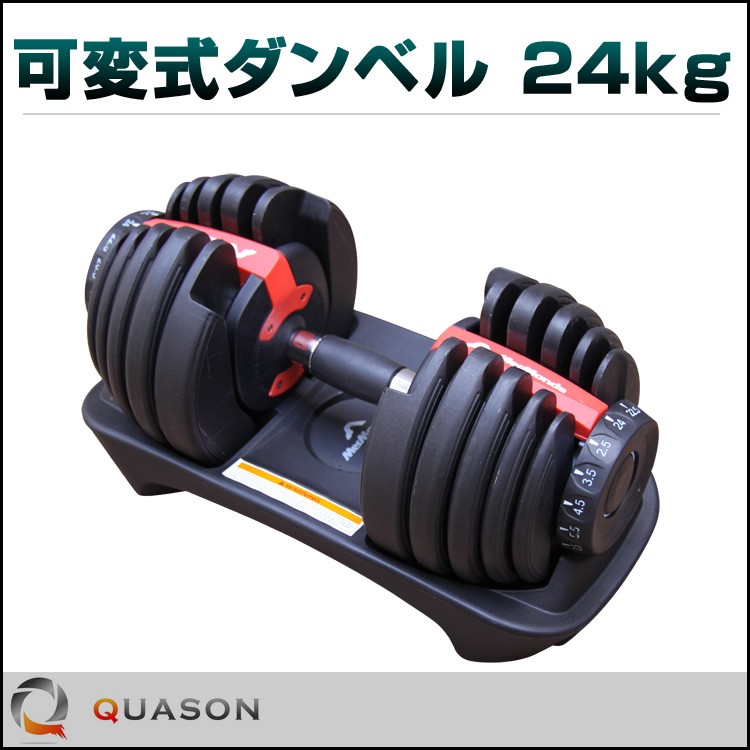 商品説明:●人気商品のダンベルに可変機能が加わりました!●状況に応じて2.5kg~24kgの調整が可能です。●ダンベル1個あたり最大約24kgとなります。 サイズ:ダンベル本体:横43cm×高さ23cm×奥行21cm重さ:ダンベル本体:約2.5kg~24kgダンベル台座:約2.3kg