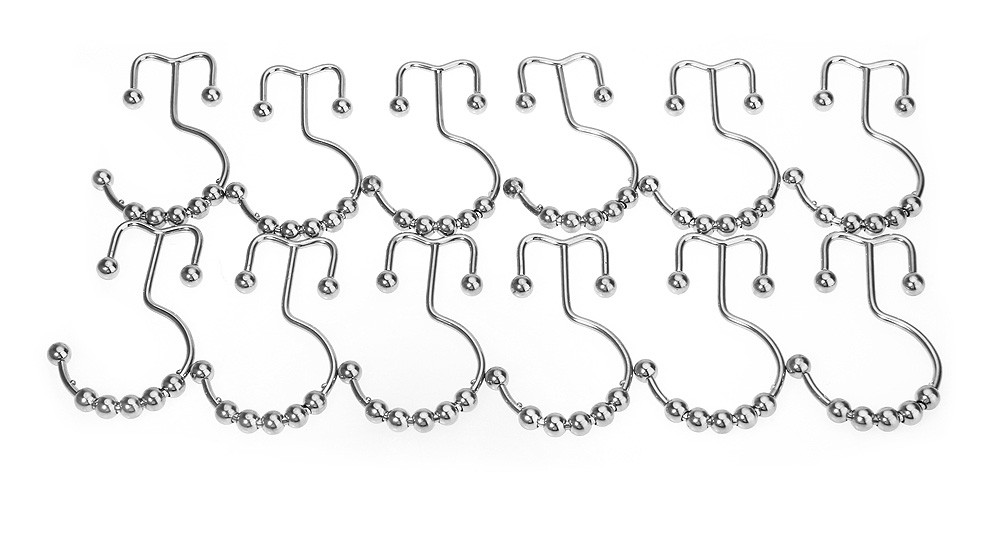 12Pcs Stainless Steel Rustproof Double Glide Shower Curtain Hooks Rings for Bathroom Decoration With Rollerball Design