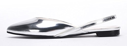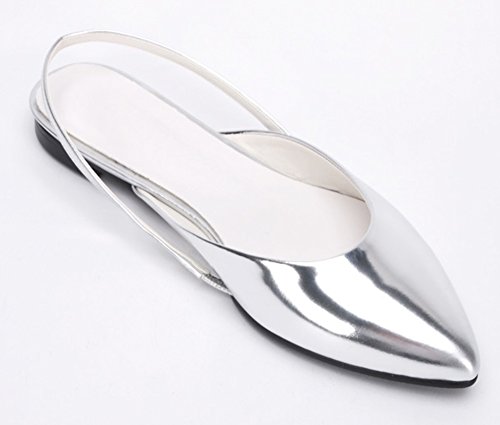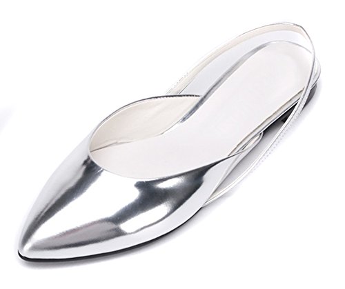 (ATTITUDE;L)/Women's/Flats/DIRECT FROM USA/ATTITUDE;L Women’s Genine Leather Pointed Toe Metalic Mary Jane Style Silver Flats Shoes