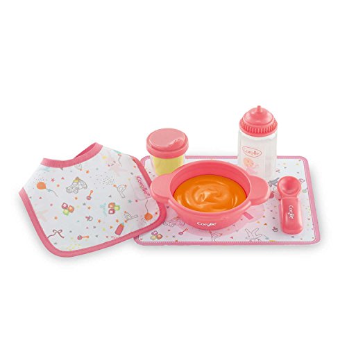 -. Binding : Toy -. Brand : Corolle -. EAN : 0887961287233 -. Feature : Everything a make believe mom needs for her baby doll at mealtime / It includes magic milk feeding bottle, pacifier and bib / Playing mommy or daddy will be easy with these accessories / Suitable for 12 inch Mon Premier Corolle dolls / Every Corolle doll is styled in France -. IsAdultProduct : 0 -. Label : Corolle USA -. Manufacturer : Corolle USA -. Model : DMT34 -. MPN : DMT34 -. PackageQuantity : 1 -. PartNumber : DMT34 -. ProductGroup : Toy -. ProductTypeName : TOYS_AND_GAMES -. Publisher : Corolle USA -. Studio : Corolle USA -. Title : Corolle Mon Premier Mealtime Set -. UPC : 887961287233 -. Warranty : No Warranty