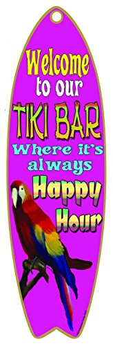Welcome To Our Tiki Bar Happy Hour Nautical Ocean Surfboard Sign 5"x16"