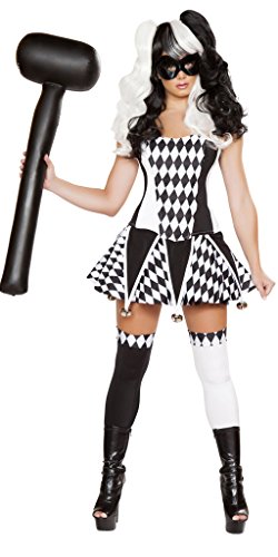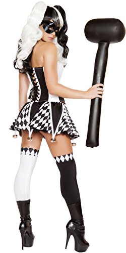 -. Brand : Musotica -. Department : womens -. Feature : Women's Clown Costume / Black and White Checkered Corset / Skirt with Triangle Panels and Bells / Mask Included / Leggings, Boots and Wig Not Included -. ProductGroup : Apparel -. ProductTypeName : ADULT_COSTUME -. Title : Suicide Squad Clown Halloween Costume
