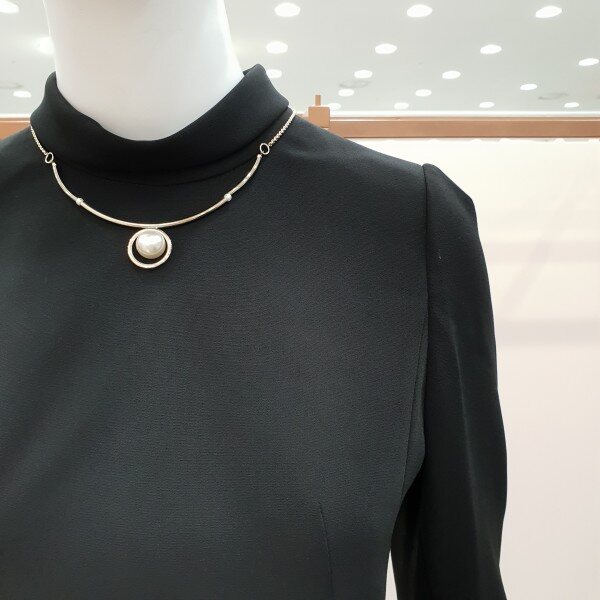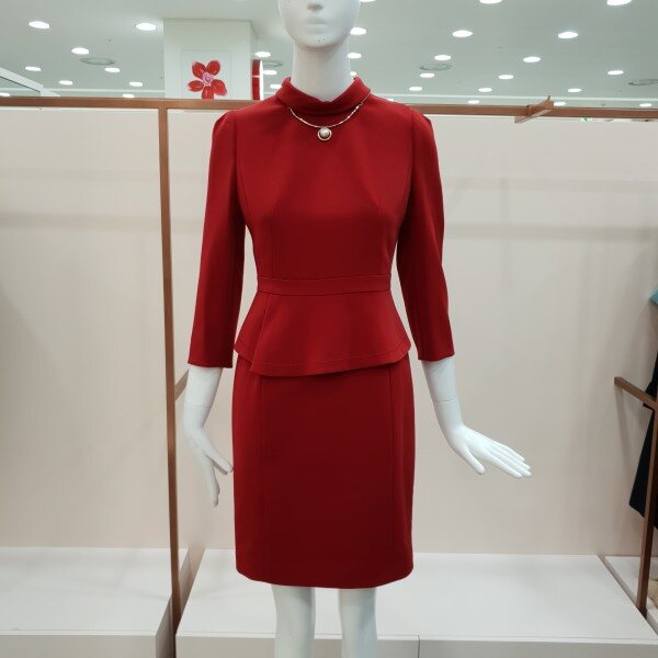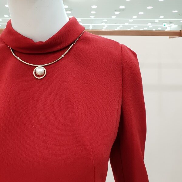 격식있는자리, 오피스룩에 좋은 시크라인의 정장 원피스 블랙,레드 컬러구성*목걸이 세트상품