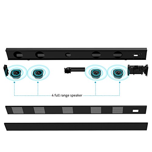 2.0 Channel Soundbar with Remote Control: Sound bar features 4 high quality speakers, deliver enhanced volume and clear excellent stereo sound, using remote control freely arbitrary switch the movies, television shows, video games and music, you can enjoy an fantastic home theater surround sound experience