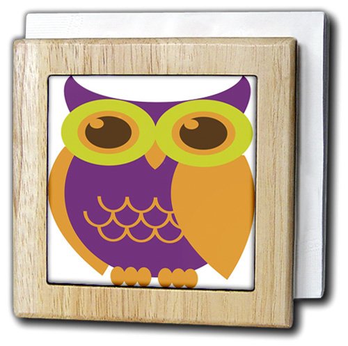 3dRose nh_124595_1 Orange, Purple and Green Owl Wall Art, Natural