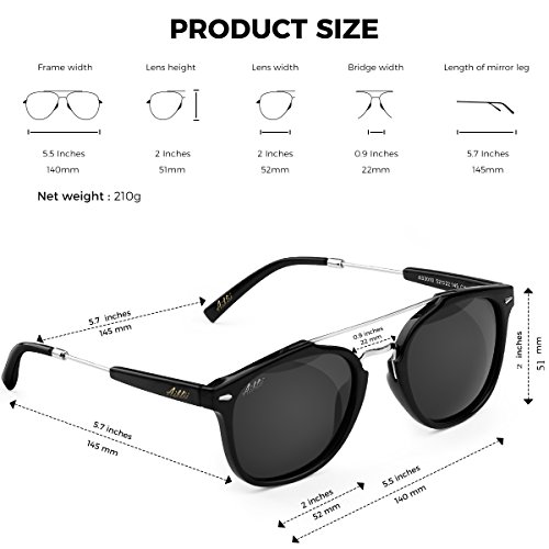 -. Feature : Aiblii UV400 polarized sunglasses are scratch resistant, offering 100% UV radiation protection and restore true color and protect eyes by reduce glare reflected of roads, bodies of water, snow, and other horizontal surfaces. (Different color 7 membrane protect your eyes and suit for all seasons) / Aiblii designer sunglasses are made of impact resistant TR and Metal frame which are lightweight for men and women engaging in outdoor and sports activities, just like golf, hiking, fishing, driving use. / Ergonomic construction and flexible advanced scientific design provide the ultimate in performance for all different face type, both man and woman will get their own fashion style from this. / Classic and fashion style eyewear give a new look and can add your confidence whenever you are. Also it's suitable for all year round wearing, would be a great Christmas, Birthday, Anniversary gifts for men and women. / SUNGLASSES DIMENTION - Lens Width: 52mm(2inches) | Lens height: 51mm(2inches)| Temple Length: 145mm(5.7inches) | Nose Bridge: 22mm(0.8inches). Package includes: 1*sunglasses, 1*hard sunglasses case, 1*cleaning soft cloth.