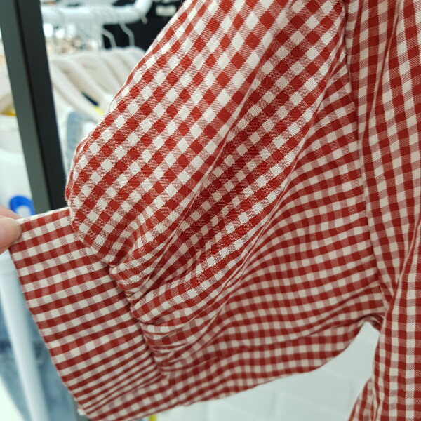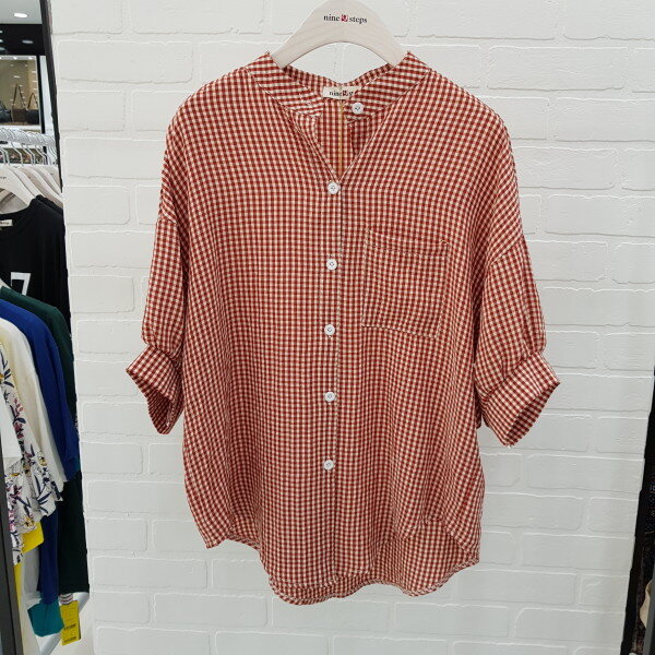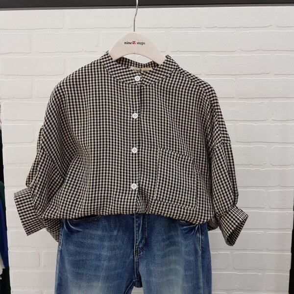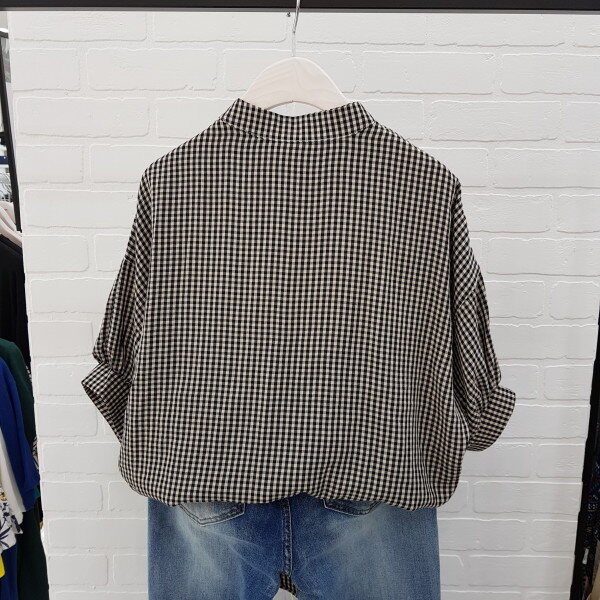 체크벌룬 차이나넥 블라우스 입니다