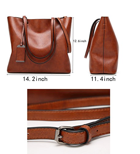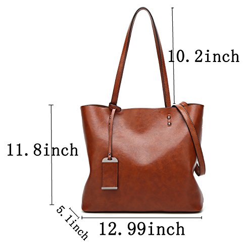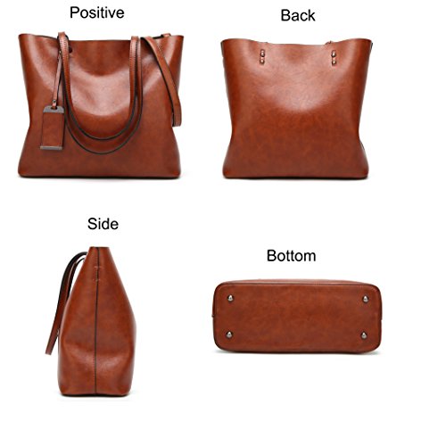 Product Description Item Type: Obosoyo Top Handlebag/Shoulder Tote Bag Style: Modern Fashion Pattern: Solid Color Outer Material: High Quality Greased Leather Inner Material: Nylon Fabric Closure: Top Zipper Closure Features: Soft Leather Handle,Unique ornaments,Detachable Shoulder Strap Inner Pockets: 1 middle zipper pocket/1 side zipper pocket/2 compartments open pockets Size: Approx.36x32x29cm/14.2x12.6x11.4 inches(Bottom Width*Open Length*Body Height) Occasion: shopping/dating/working/traveling,Versatile ------------------NOTE--------------------- Size may be 2 cm/1 Inch in accuracy due to hand measure The material is faux leather, so little leather smell is normal, putting it in well-ventilated areas for few days and the smell will disappear 0