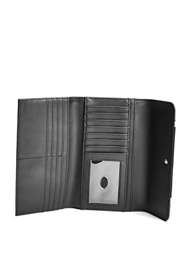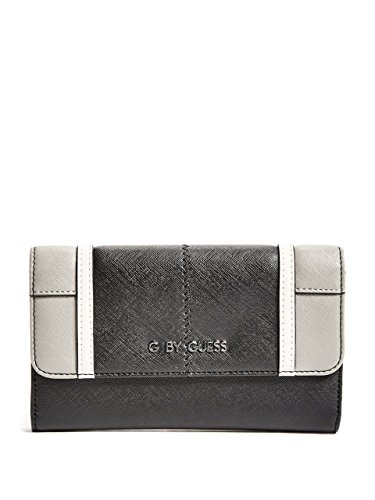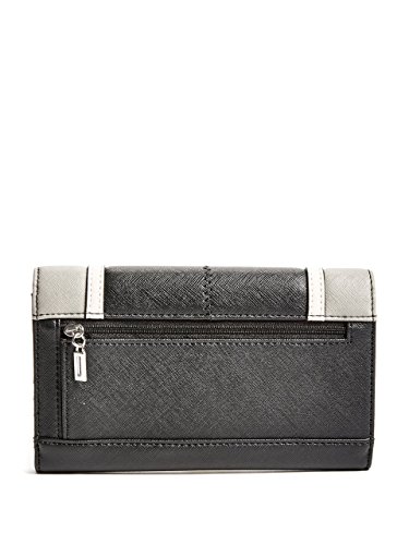 Product DescriptionColor-block faux-leather wallet is finished with silver-tone logo hardware at the front and a flap closure. Bonus exterior zipper pocket at the back.0