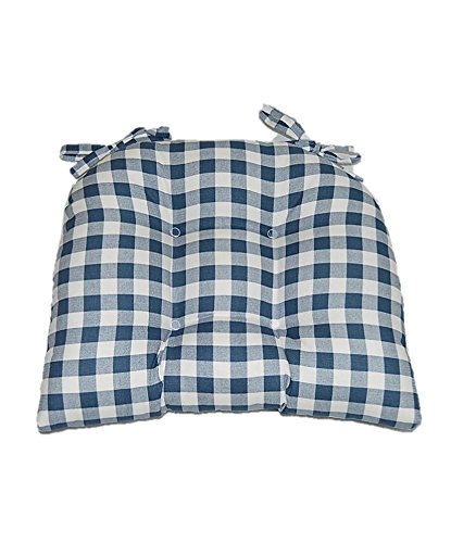 -. Title : Indoor Cotton Blue Plaid Country Checkerboard / Checkered Fabric Tufted Cushion Pad with Ties for Kitchen / Dining Chair - Select Size