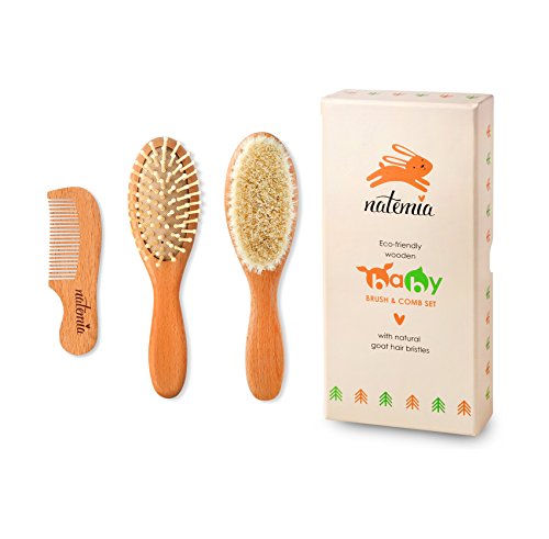 Natemia Premium Wooden Baby Hair Brush and Comb Set – Natural Soft Bristles – Ideal for Cradle Cap - Perfect Baby Registry Gift