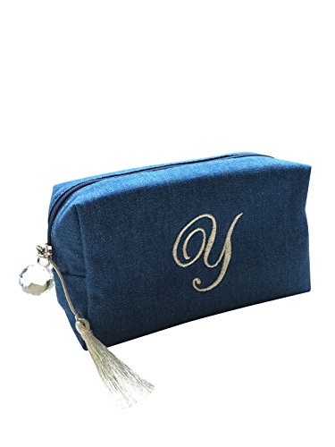 -. Title : 収納美人 かわいい イニシャル デニム 化粧 コスメ ポーチ 小物入れ タッセル チャーム 付 【BSW-255】 プレゼント ギフト 誕生日 記念品