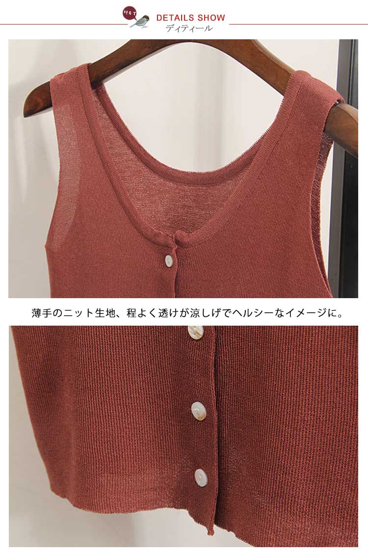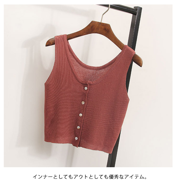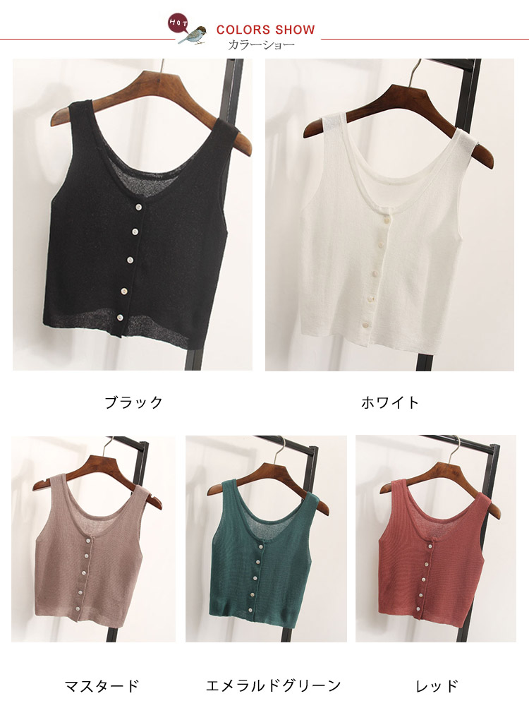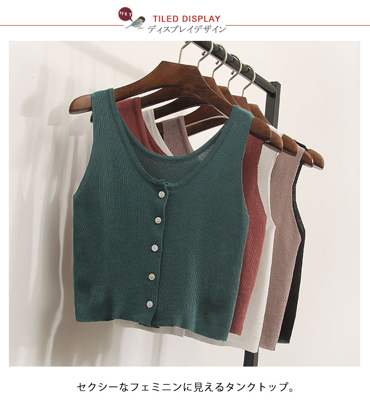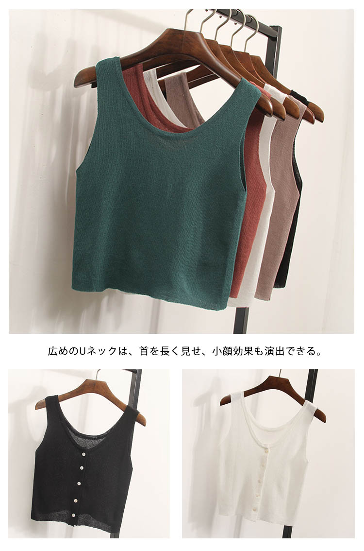 | セクシーなフェミニンに見えるタンクトップ。広めのUネックは、首を長く見せ、小顔効果も演出できる。ほそっり腰を露出しするへそ出しルック、セクシーな女性魅力をアピール。インナーとしてもアウトとしても優秀なアイテム。 | |