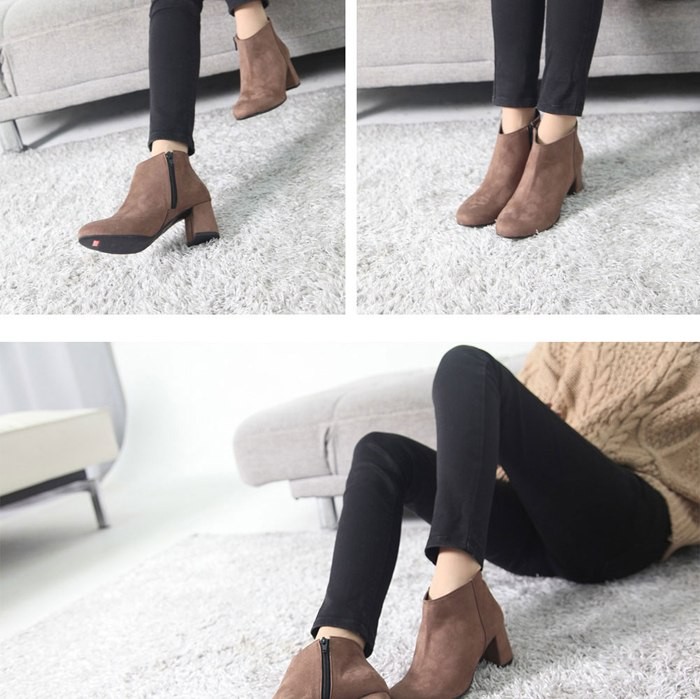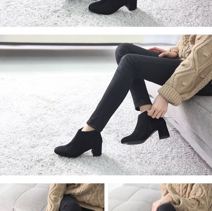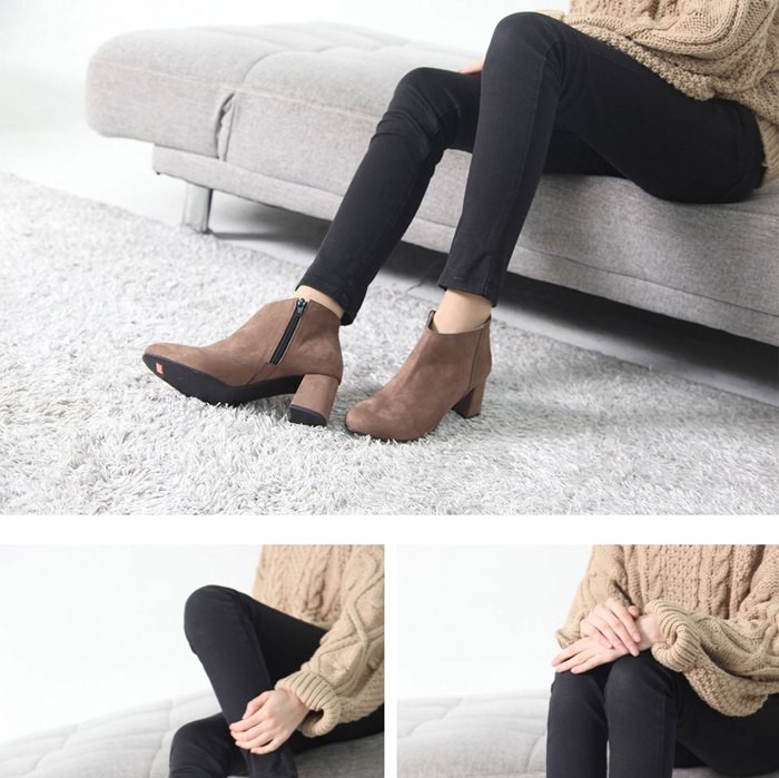 商品名:ブーティ レディース ブーティー チャンキーヒール 太ヒール スエード調 2017 秋冬 ファッション 靴 婦人靴