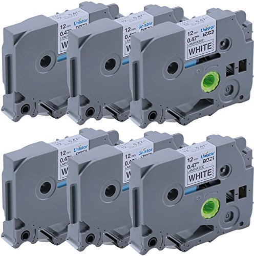 6 Pack, Size: 1/2 inch (12mm) x 26.2ft (8m); Color: Black Text on White Background