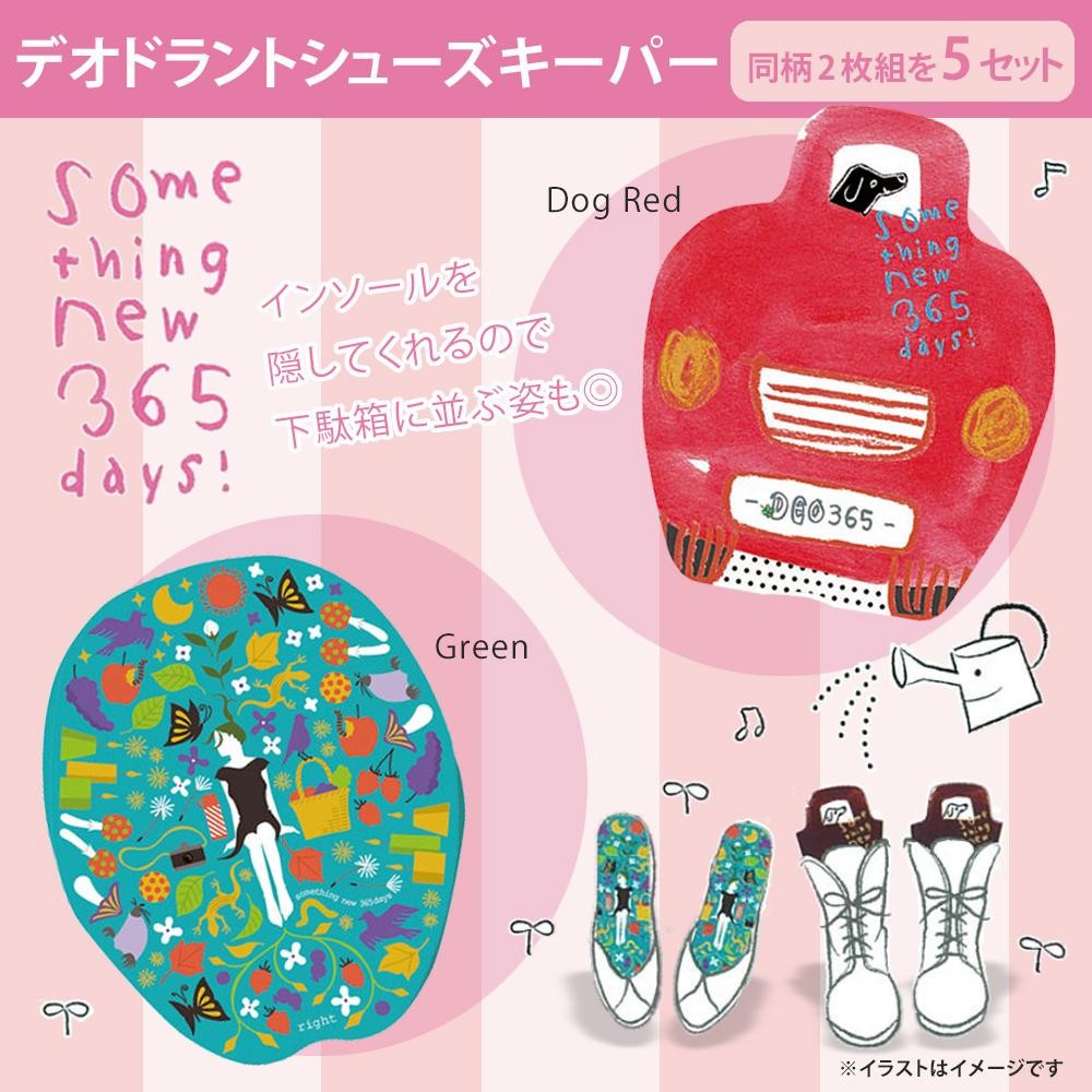 可愛らしいデザインで、下駄箱に並ぶ姿もgood!おしゃれで機能的なシューズキーパーです。 製造国:日本 素材・材質:ポリプロピレン 仕様:取扱に関してはパッケージに記載あり天日干し不要交換時期(目安):約1年間 セット内容:同柄2枚組×5セット ※サプライヤー直送品【商品名】デオドラントシューズキーパー 2枚組 ×5セット Green・sn365green