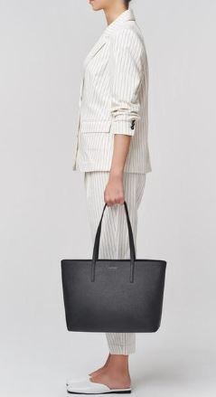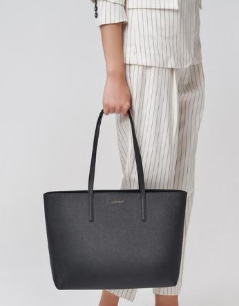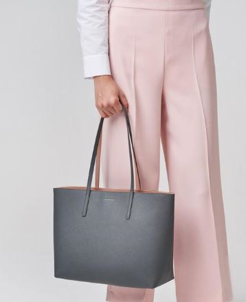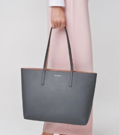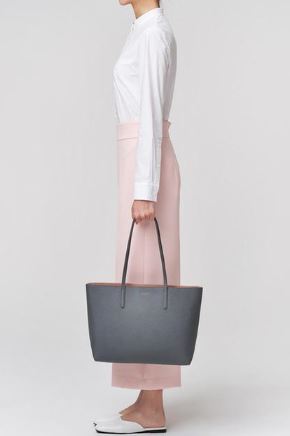 군더더기 없는 깔끔한 디자인에 골드 컬러감의 로고 장식으로 포인트를 준 쇼퍼백입니다