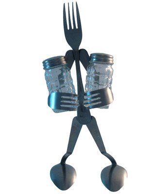 - Hand-curved and welded from every-day forks and spoons, this forked-up fork holder is sure to bring smiles as it holds a salt and pepper shaker.