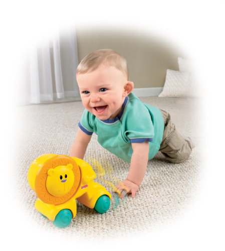 The Growing Baby Press and Crawl Lion helps encourage and reward baby's physical development