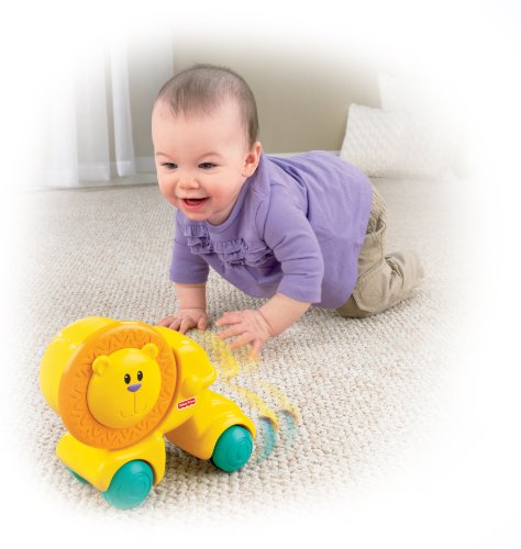 With an easy activation, baby presses on the back and sends the Lion rolling