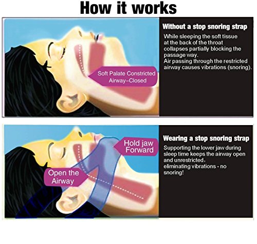 Features: 1) Anti Snoring Mask is made of high-quality and durable material 2) Double-Stitching to ensure long lifetime quality 3) Non-Itchy material to ensure comfortable sleep 4) Strong Nasal Strips to help expand nasal space for more breathing room 5) Silk Sleep Mask to ensure soothing rest without distractions How It Works: Snoring Chin Strap is made to keep your mouth closed during all sleep. Breathing through the mouth will be drastically reduced and will lead to no snoring.
