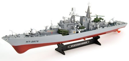 Studio : World Tech Toys Publisher : World Tech Toys Binding : Toy Product Description Anchors Aweigh! Adventure on the high seas is ready to run right out of the box with this huge destroyer! At over 30" long, this beauty is big, lifelike and bristling with armaments and details. Choppers and boats standing ready on the decks and lighted superstructure make for an imposing presence. Twin props and full proportional control make her as seaworthy as she is impressive! 0