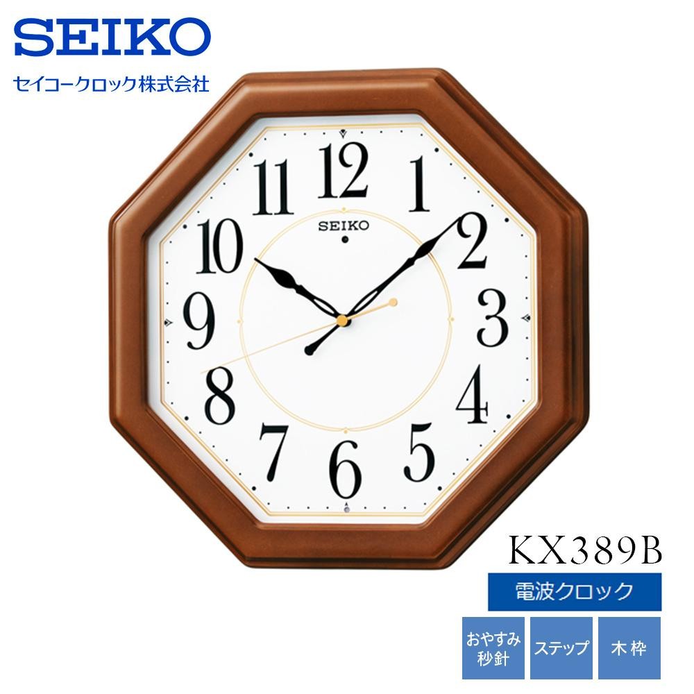 八角形の木枠がポイントの電波掛時計です。 製造国:中国 素材・材質:枠:木(MDF・茶木地塗装)前面:ガラス 商品サイズ:縦330×横330×奥行47mm 重量:約1.1kg 付属品:単3マンガン乾電池×1個、木ねじ(木の厚い壁・木の柱専用)×1本、取扱説明書、保証書(保証期間:1年間) ※サプライヤー直送品【商品名】SEIKO セイコークロック 電波クロック 掛時計 スタンダード KX389B