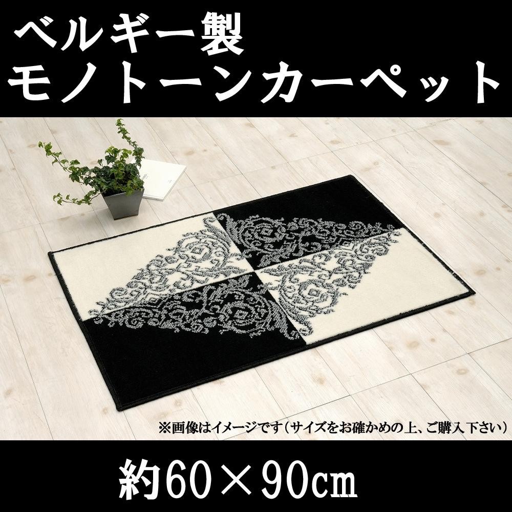 丈夫で美しいベルギーのウィルトン織カーペットです。アラベスクでダイヤ柄を描き、クラス感のあるデザインになっています。 製造国:ベルギー 素材・材質:ポリプロピレン100% 商品サイズ:約60×90cm、厚み約8mm 重量:約800g 仕様:毛足:約7mm床暖房対応洗濯機・乾燥機使用不可 ※サプライヤー直送品【商品名】ベルギー製 モノトーンカーペット 60×90cm 1198 モノトーン