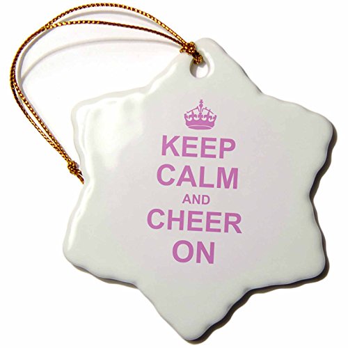 3dRose orn_157697_1 Keep Calm and Cheer-On Gift for Cheerleaders Pink Fun Funny Humor Humorous Snowflake Ornament, Porcelain, 3-Inch