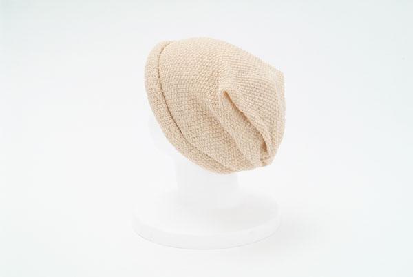 ルームキャップは24時間着用が可能に開発された室内用帽子です。抗がん剤や薬の副作用で髪が抜けてしまう患者さんや作業時の髪の乱れを防止します。エアコンのきいた室内での着用による頭部の蒸れを極限まで解消しました。ふんわりしたかのこ編みのロールタイプです。 | |