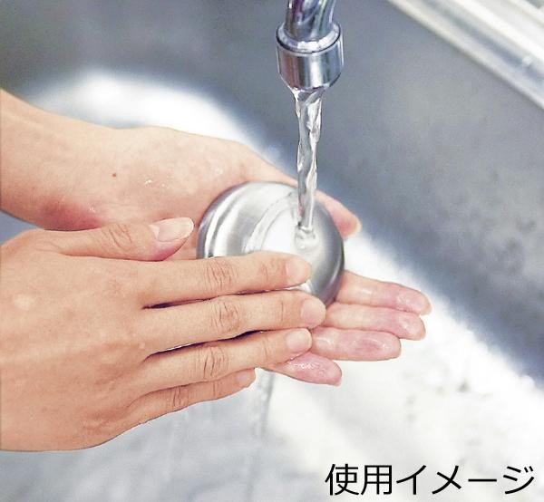 魚やにんにくの強烈な臭いは石鹸で洗ってもなかなか取れないものです。そんな時に重宝するのがステンレスソープです。流水で石鹸を使用するように手を洗うと嫌な臭いが取れていきます。 |