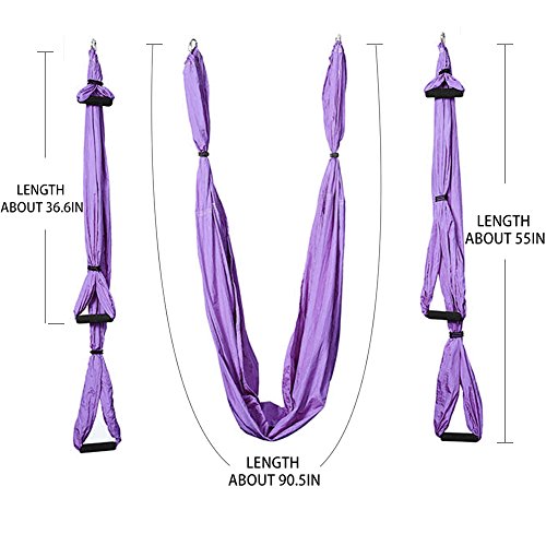 Quality Yoga Accessories You'll Get: - 1 Yoga Swing Seat/Hammock - 2 Yoga Swing Arms with 3 comfortably sized handles per yoga swing arm - 2 Multi-loop Daisy Chains for easy height adjustment - 2 Suspension Ceiling Hooks,8 pieces expansion screws - 1 Travel Storage Bag
