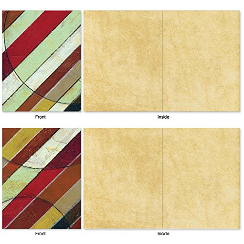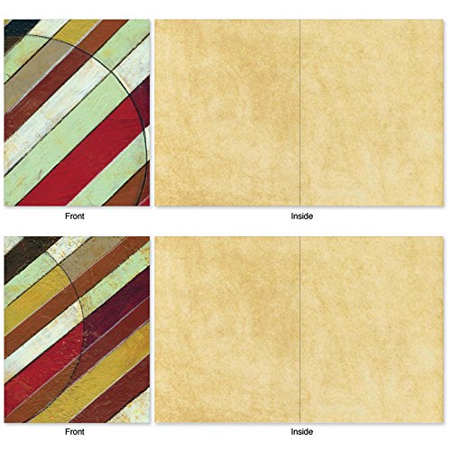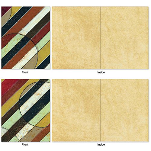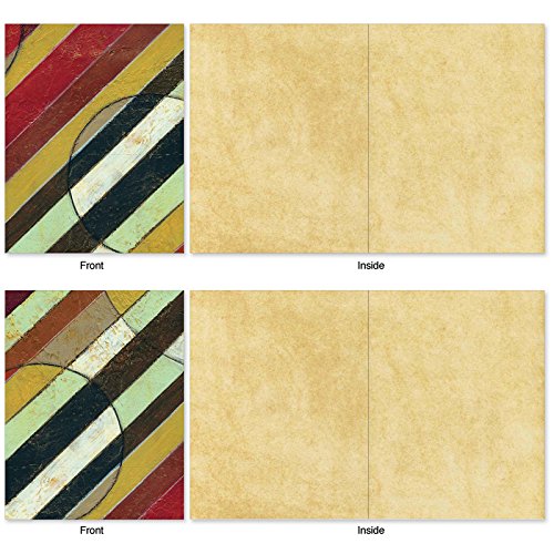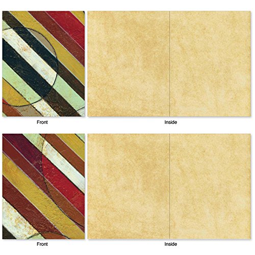The dynamic diagonal patterns contrast the soft earthy colors on these Blank Note Cards perfect to send a note to just say "Hello." But these cards can also be used for an invitation to dinner or a party, as a note of thanks or to send a gift card. These notecards look great framed, too! Try framing them individually, or grouping several in a collage frame, to create visually appealing wall decor.