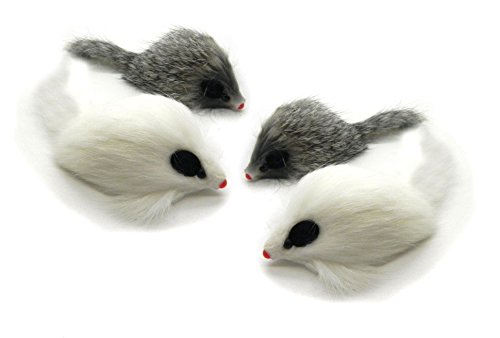 -. Feature : 100% Real Rabbit fur long hair - Nice Quality! / Black felt fabric ears, plastic eyes and nose, leather tail / A small pebble inside makes rattle sound, 2 inches long / Natural white and Natural gray color, 1 of each / A real fur mouse and a fur pom pom in one! Your cat will think these are real!