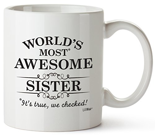 Sister Gifts Funny Christmas Sisters Day Gifts, Sis Best Ever Birthday Coffee Mugs Cups, For The Greatest Sister’s Birthdays Novelty Cup Ideas, World’s Most Awesome Sister Gag Mug