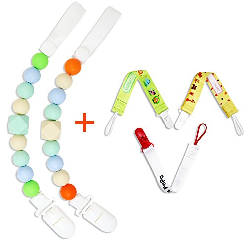 -. Title : Pacifier Clip (5 Pack) Silicone Beads Food Grade Teething Pacifier Clips, Universal For Teether Toys, Pacifier, Binky Holder