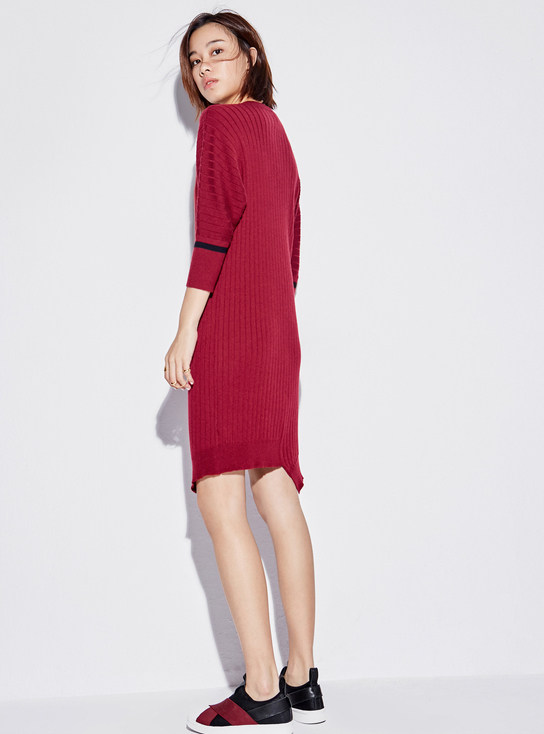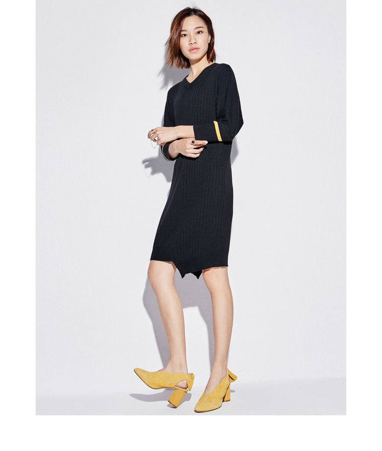 10%撞色条纹突破全身竖条纹的沉闷针织感,